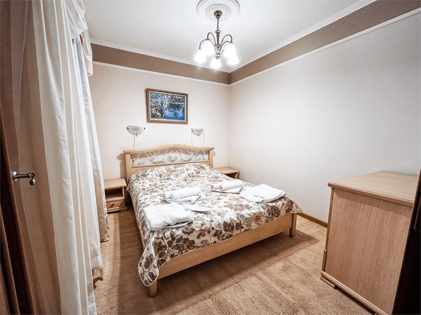 Просторные двухкомнатные люксы с гостиными и уютными спальнями. Номера этой категории площадью 60 квадратных метров – изящный компромисс между классическим интерьером и современной эргономичностью. Великолепный мебельный гарнитур, кофейным и туалетным столиками, гардеробная и ванная комнаты, изысканное постельное белье, плазменные панели – детали, способные создать поистине идеальный отдых. Большинство номеров данной категории обращены окнами на живописную горную долину. Основных мест в номере - 1, также возможно еще дополнительное размещение 3-х гостей. Интерьер номера может отличаться от представленного на фотографиях.